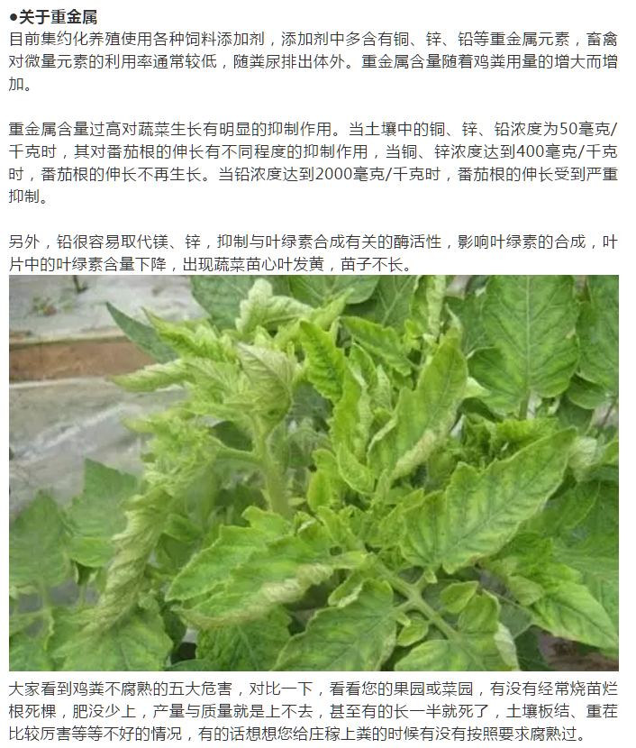 但事实是,现在施用粪肥,就是需要处理。因为几十年前,粪肥处理都十分简单,那个时候养鸡养猪,没有人会在饲料中添加大量抗生素和含有重金属的添加剂,少量散养的畜禽产生不多的粪便也早就被再利用去肥田了。但随着规模养殖的兴起和发展,这种状况早已改变。种植者们应该了解的是,养殖场的畜禽粪便不可以直接施用到土地里,必须事先进行标准的无害化处理。